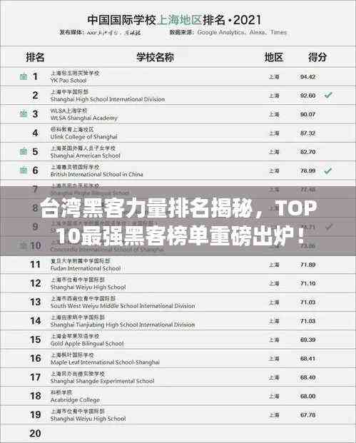 是台湾黑客力量排名前十名,这些黑客在网络安全领域拥有较高的知名度和影响力,他们的技术和专业知识备受认可,我们应该以客观、理性的态度看待黑客,认识到他们在网络安全领域的重要作用和贡献,我们也要提高网络安全意识,加强网络安全防护,保护个人和企业的信息安全。