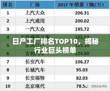 日产工厂排名TOP10,揭秘行业巨头榜单