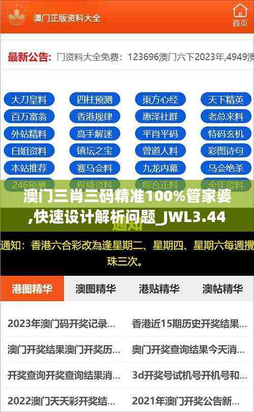 随着科技的迅猛发展,数据分析技术在各个行业中的应用逐渐增多。尤其是在博彩、金融等领域,如何快速准确地解析数据已成为提升竞争力的关键。为适应这种发展趋势,我局特此推出“澳门三肖三码精准100%管家婆,快速设计解析问题_JWL3.44.98全景版”,以期帮助相关行业从业者提高工作效率。