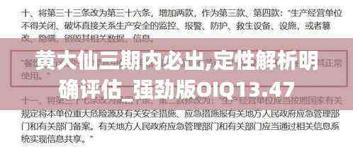 在当今的博彩市场中,香港的六合彩备受关注,而“黄大仙三期内必出”这一关键词更是吸引了无数彩民的目光。博彩的魅力在于其不可预知性以及可能带来的财富。本文将围绕“黄大仙三期内必出”的概念,进行深入的定性解析和评估,帮助彩民更好地理解这一现象背后的逻辑和策略。