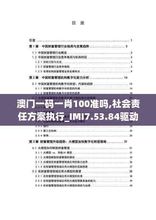 在现代社会,企业的社会责任越来越受到关注,特别是在经济飞速发展的澳门。随着数字化和信息技术的进步,社会责任的执行也面临新的机遇和挑战。本文将详细探讨“澳门一码一肖100准吗”和“社会责任方案执行_IMI7.53.84驱动版”的相关内容,旨在提供参考和借鉴。