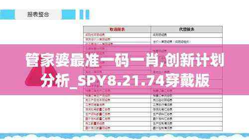 关于“管家婆最准一码一肖,创新计划分析_SPY8.21.74穿戴版”研究的报告