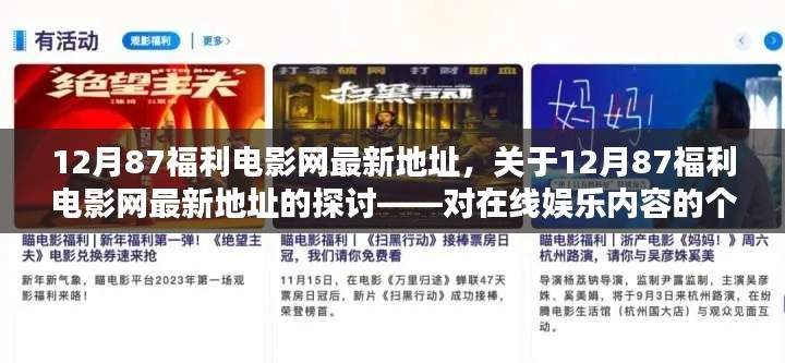 随着互联网的普及,网络娱乐内容日益丰富,其中电影网站因其便捷性和多样性受到广大网友的喜爱。“12月87福利电影网最新地址”成为热门话题,引发了关于网络娱乐内容质量和道德底线的广泛讨论,本文将围绕这一主题,阐述个人对于在线娱乐内容的观点,并对正反双方的观点进行分析。