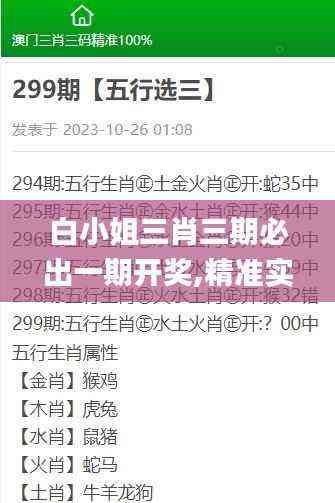 白小姐三肖三期必出一期策略,是基于一个假设:在连续三期的生肖彩票开奖中,至少有一期会包含特定的三个生肖。这个假设是基于对大量开奖结果的统计分析,发现某些生肖组合在一定周期内出现的频率较高。