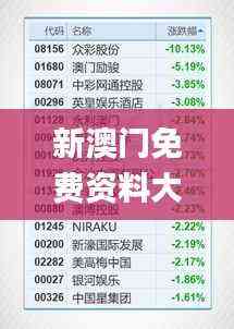 在这个信息爆炸的时代,人们对于各类资料的需求日益增长。尤其是与澳门相关的资料,由于其独特的历史和文化背景,吸引了众多研究者和旅者的关注。为了满足这种需求,“新澳门免费资料大全”这个平台应运而生。它提供了一个集资料查询、学术交流和信息分享于一体的在线平台,极大地方便了人们对相关领域的研究和兴趣。本文将详细阐述“新澳门免费资料大全”的重要性,并探讨如何有效地利用这个资源。