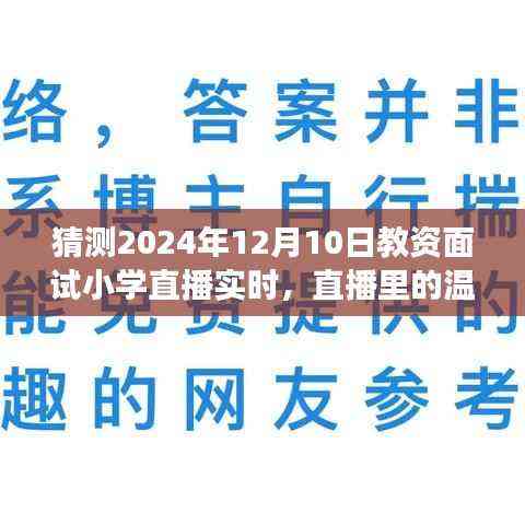 摘要:,,预计至2024年12月10日,小学教资面试将通过直播形式进行,展现真实的面试过程。直播将聚焦于面试中的温暖时光,展现面试官与应试者之间的交流与互动。背后隐藏着众多关于教育梦想与责任的故事,这些故事将呈现小学教育的现状与发展趋势。此次直播为观众带来真实感受,展现教育行业的温度与力量。