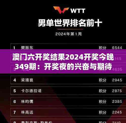 <h2>引言</h2>\n澳门,这个东方的“拉斯维加斯”,凭借其独特的魅力和丰富多彩的娱乐活动,吸引了世界各地的游客,每逢开奖之夜,这座城市的激情和热情都达到顶峰,今晚,我们将迎来澳门六开奖结果2024年第349期,在这个令人激动的时刻,让我们共同感受那无法言喻的兴奋与期待,深入探索澳门六开奖的神秘世界。