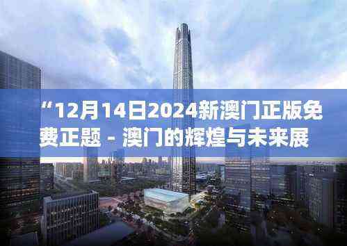 澳门,这座位于珠江三角洲的璀璨明珠,凭借其深厚的历史底蕴和独特的地理位置,历经400年的风雨变迁,已然发展成为一个全球瞩目的国际都市。在未来的新征程中,「12月14日2024新澳门正版免费正题 - 澳门的辉煌与未来展望」将作为指导性文书,为我们深入了解澳门的发展成就及其未来发展前景提供了一扇窗口。