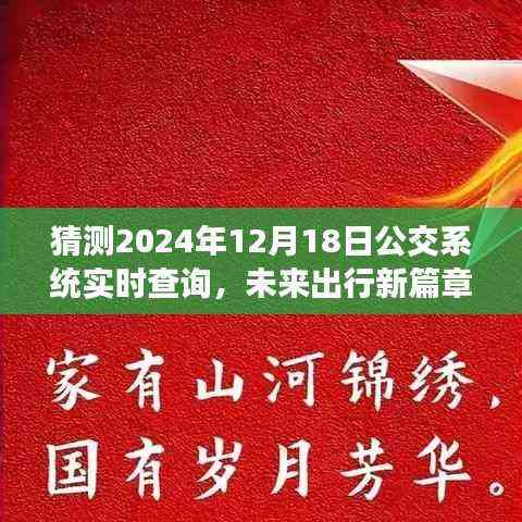 摘要:,,预计至2024年12月18日,公交系统将迎来实时查询的新时代。未来出行将展现全新篇章,公交系统实时查询的革新将带来前所未有的体验。届时,乘客能够实时掌握公交车到站时间、线路调整等信息,极大提升出行效率和便捷性。公交系统的革新将重塑城市公共交通的未来,为乘客创造更加智能、高效的出行体验。