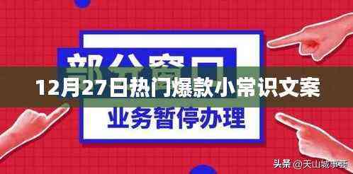 随着科技的飞速发展和信息时代的到来,我们每天都在接触和了解着各种新鲜的小常识,就让我们一起走进12月27日的热门爆款小常识世界,探索其中的奥秘和趣味。
