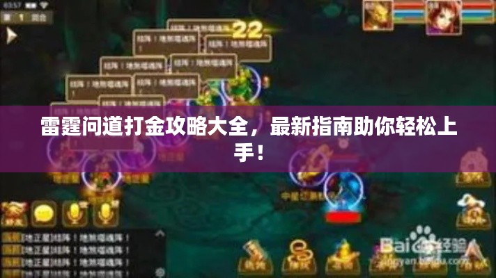 随着游戏产业的飞速发展,各类游戏层出不穷,在众多的游戏中,"雷霆问道"以其独特的玩法和丰富的游戏内容吸引了大量玩家,打金作为游戏中重要的一环,对于提升角色实力、获取稀有道具具有关键作用,本文将为大家带来最新的雷霆问道打金攻略,帮助玩家更好地享受游戏。