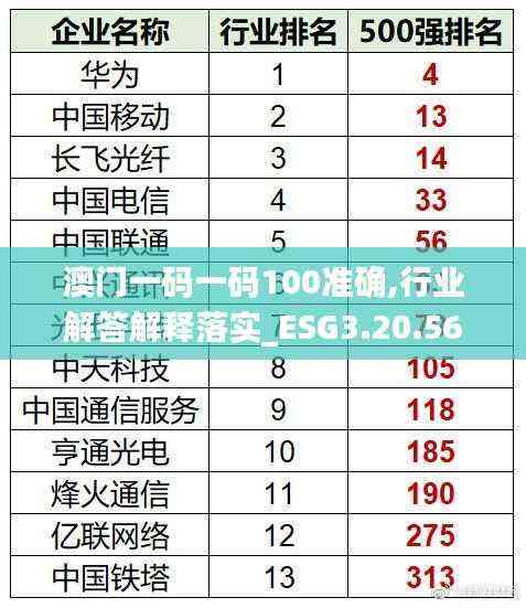 在当今时代,越来越多的企业和组织意识到环境、社会和公司治理(ESG)在其发展中的重要性。为了更好地理解和落实ESG原则,澳门的相关机构积极探索出一条适合本地区发展特点的道路。本文将对“一码一码100准确”的理念进行深入解读,并结合ESG3.20.56复刻版进行详细阐述。