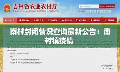 关于南村封闭情况的最新公告如下,请广大村民及有关人员注意以下信息,并严格遵守相关规定。
