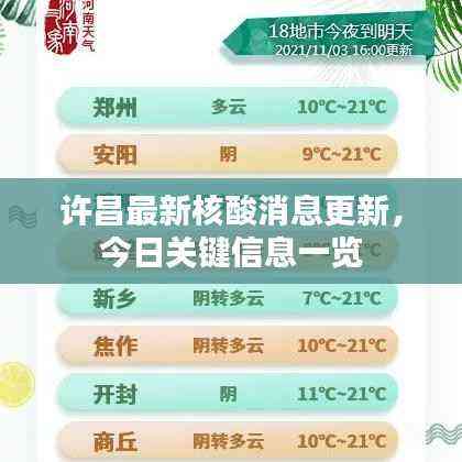 今日核酸消息许昌最新消息传来的是积极的信息,许昌市在疫情防控方面取得了显著成效,这离不开市民的积极配合和防控人员的辛勤付出,面对未来,许昌市将继续加强疫情防控工作,确保市民的健康安全,让我们共同努力,共同应对疫情挑战。