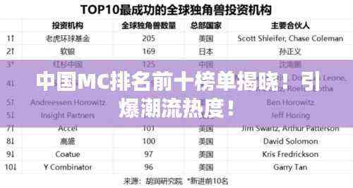 就是中国MC排名前十名的玩家介绍,他们在游戏界的卓越表现不仅赢得了众多粉丝的喜爱与尊重,也为中国MC界的发展做出了巨大的贡献,他们的成功背后是无数次的努力与付出,值得我们学习与借鉴。