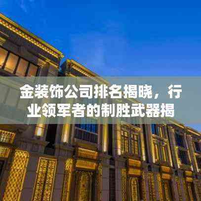 随着经济的繁荣和人们生活水平的提高,装饰行业逐渐崭露头角,成为众多投资者关注的焦点,在众多装饰公司中,金装饰公司以其卓越的品质和服务赢得了广大客户的信赖和喜爱,本文将为您揭示金装饰公司的排名及其背后的成功秘诀。