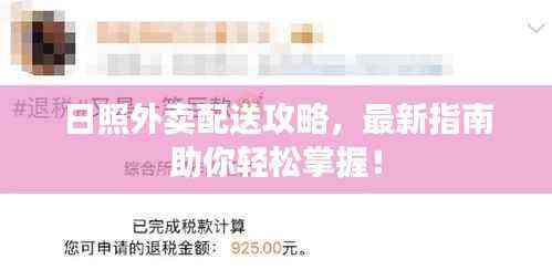 随着互联网的普及和外卖文化的兴起,越来越多的人选择在家享受美食,日照作为一个美丽的海滨城市,外卖业务也日渐繁荣,本文将为您提供最新的日照送外卖攻略,帮助您更好地了解日照的外卖市场,从而享受便捷、高效的外卖服务。
