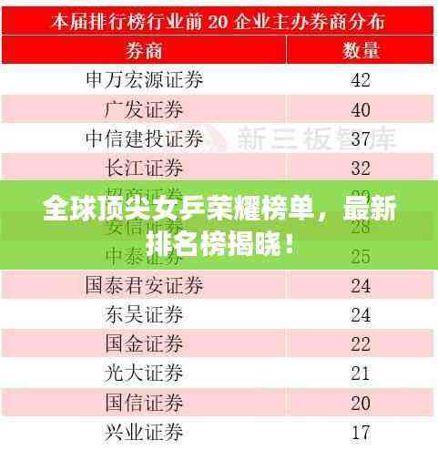 随着乒乓球运动的不断发展和普及,女子乒乓球的竞争也日益激烈,世界女乒排名最新排名榜的发布,引起了广大乒乓球爱好者和专业人士的广泛关注,本文将为您详细介绍世界女乒排名最新排名榜的相关情况。