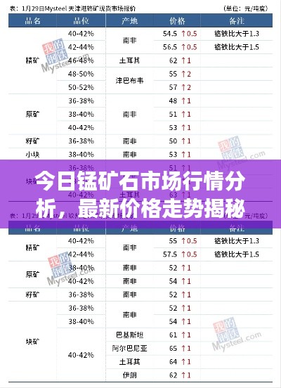 锰矿石作为一种重要的工业原材料,其价格受到全球经济形势、政策法规、市场供需等多方面因素的影响,本文将针对今日锰矿石的最新价格进行分析,帮助读者了解市场动态,把握投资机会。