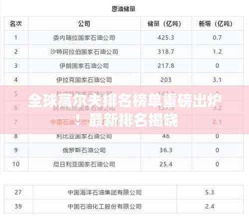 全球高尔夫排名榜单重磅出炉!最新排名揭晓