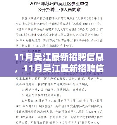 随着秋去冬来,职场也迎来了新的机遇与挑战,在这篇文章中,我们将重点关注11月吴江地区的最新招聘信息,为广大求职者提供一份详尽的就业指导,本文将结合市场趋势、企业需求,以及实际案例分析,帮助读者更好地了解当前招聘市场的动态,把握就业机会。