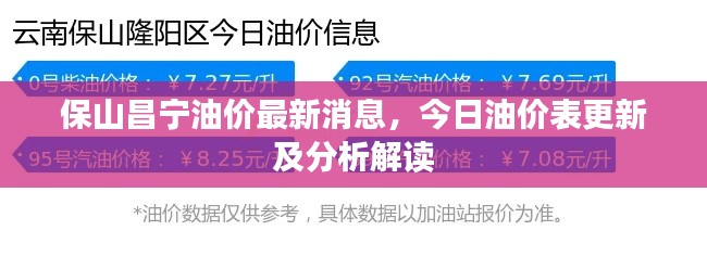随着全球经济的复苏和石油市场的活跃,油价问题再次成为公众关注的焦点,特别是在保山市昌宁县,油价变动更是引起了广大市民的广泛关注,本文将为您带来保山昌宁今日油价表最新消息及相关分析。