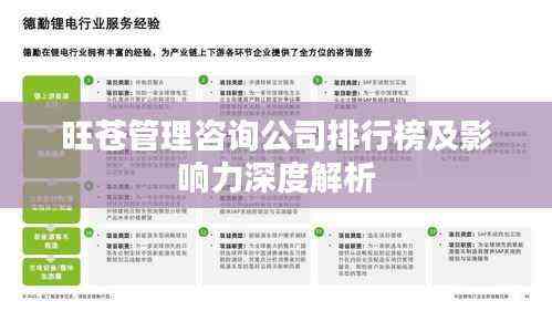 随着市场竞争的日益激烈,管理咨询行业逐渐崭露头角,在众多管理咨询公司中,旺苍管理咨询公司凭借其卓越的服务和专业的团队赢得了广大客户的信赖,本文将探讨旺苍管理咨询公司在行业中的排名及其影响力。