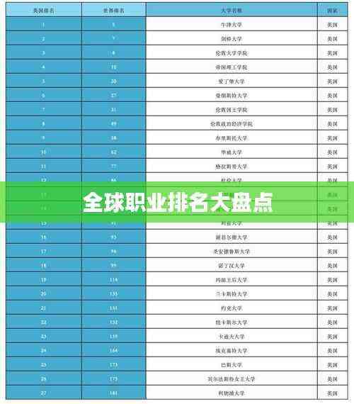 随着全球化的不断发展,各种职业在全球范围内逐渐崭露头角,其影响力与排名也随之水涨船高,本文将为您盘点世界职业排名,带您了解全球最热门的职业领域及其发展趋势。