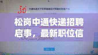 随着电子商务的飞速发展,快递行业迎来了前所未有的发展机遇,松岗中通快递作为一家在行业内具有广泛影响力的企业,为满足业务扩张和市场需求,现面向社会公开招聘优秀人才,以下是松岗中通快递招聘的最新信息,有志之士不妨关注并踊跃报名。