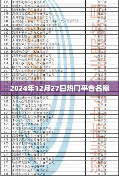 就是我们为您介绍的2024年12月27日热门平台名称,这些平台在各自的领域内都具有广泛的影响力和良好的口碑,随着科技的不断发展,这些平台将会继续优化功能,提升用户体验,满足用户需求,作为用户,我们需要关注这些平台的动态,了解其功能特点,以便更好地利用这些平台来满足自己的需求,我们也期待更多的优秀平台涌现,为我们提供更多元化、更便捷的服务。