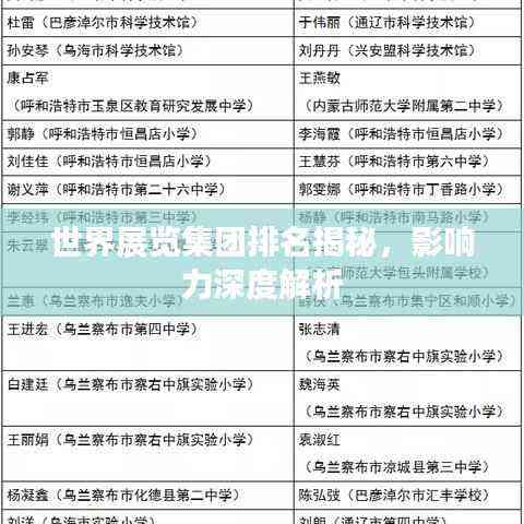 在全球经济一体化的今天,展览业作为促进国际交流与合作的重要平台,其发展势头日益迅猛,本文将探讨全球展览集团的排名及其影响力,带您了解这一行业的领军者。